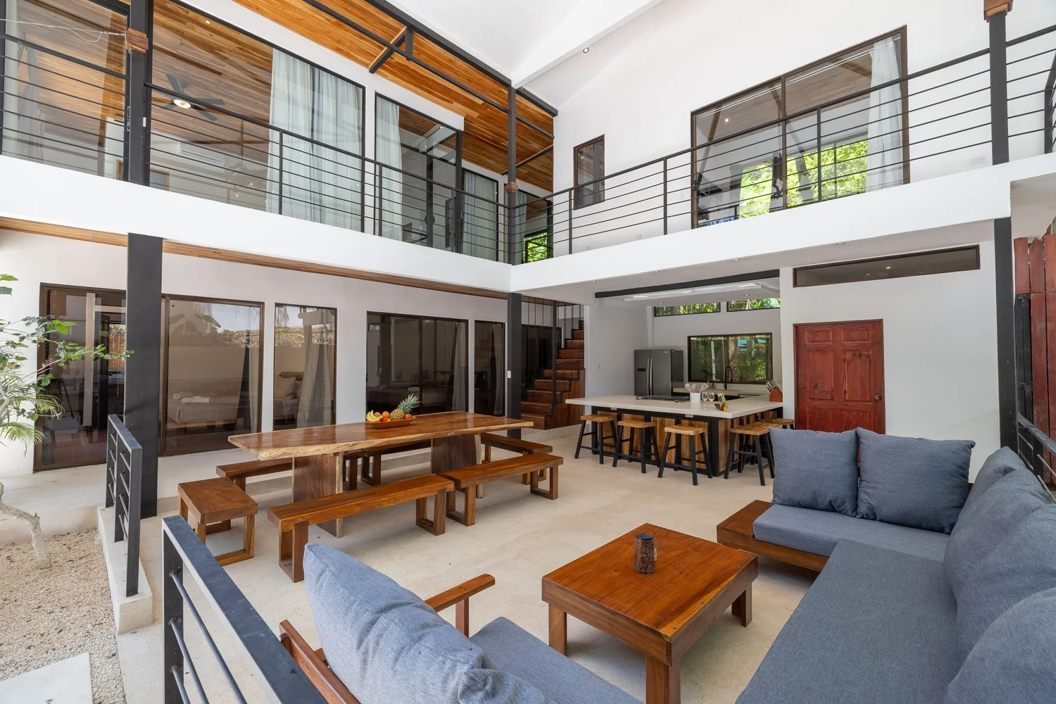 Casa Encantada is a 7-bedroom, 7-bathroom vacation home in the heart of Santa Teresa, designed for large groups who want privacy, comfort, and a central location close to everything. Tucked into a lush tropical setting, this spacious villa feels secluded while still being minutes to the beach, restaurants, shops, and some of the area’s most popular surf spots.
